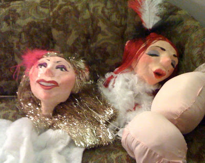 And here they are with hair and feathers, just waiting for their bodies to be added.
